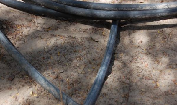 Mangueiras de instalações elétricas (conduites) foram utilizadas para levar água a moradores na zona rural e estavam contaminando a água.