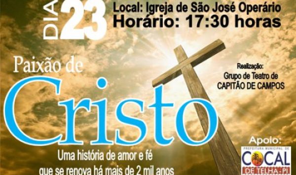 Encenação da Paixão de Cristo será nesta quarta(23) no pátio da Igreja São José a partir das 17:30 horas.