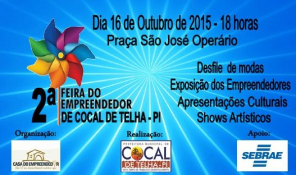 Prefeitura divulgou a programação da 2a. Feira do Empreendedor de Cocal de Telha que acontecerá nesta sexa-feira, dia 16, na Praça são José Operário