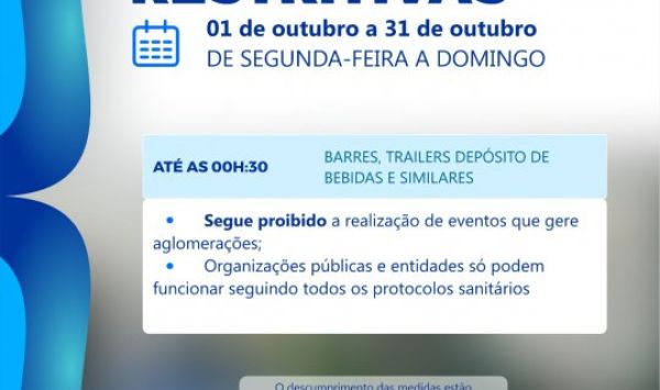 As novas medidas restritivas estarão em vigor de 01 de outubro a 31 de outubro.
