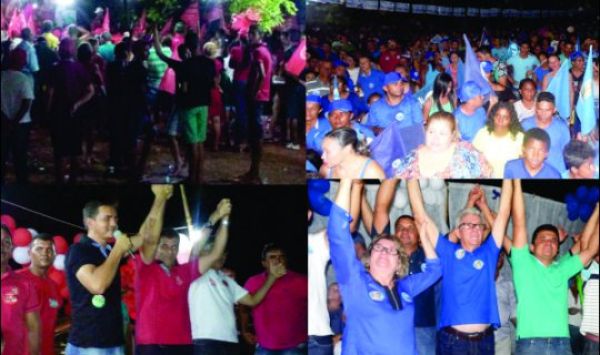 A coligação do atual prefeito fez carreata seguida de comício; Já a coligação do candidato adversário fez comício