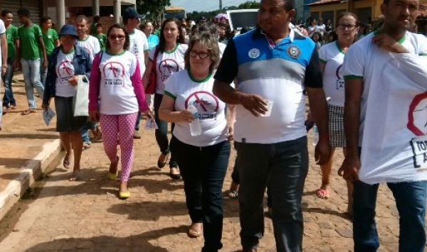 A caminhada teve participação em peso da educação do município. Objetivo é o filho levar a informação para os pais