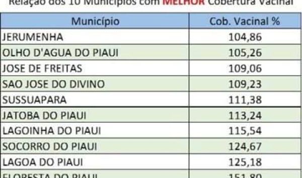 O município ficou a frente da cidade de José de Freitas que somou 109,06%.