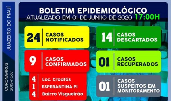 No boletim do domingo (31), o municipio registrava apenas 5 casos confirmados, ou seja em 24hrs aumentou mais 04 casos.