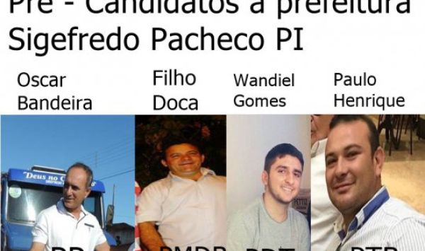 PP, PDT, PMDB e PTB já anunciaram os nomes que pretendem disputar a Prefeitura de Sigefredo Pacheco.
