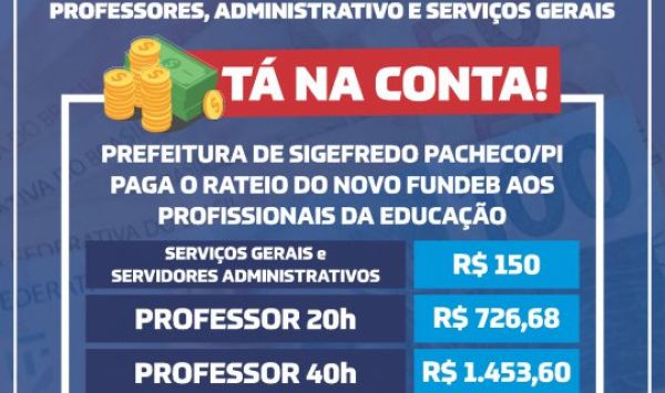 O pagamento é referente ao rateio do novo FUNDEB