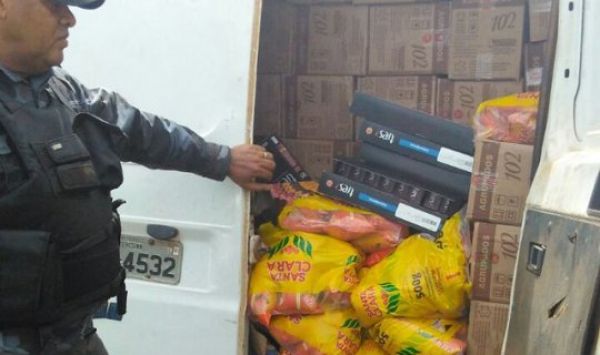 Foram necessárias quatro viaturas e uma van para fazer o transporte da carga