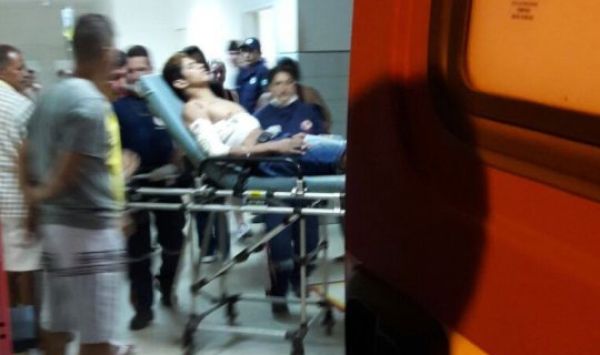 Imagens que circulam em redes sociais mostram o jovem dando entrada no Hospital com a região do tórax e braços enfaixados