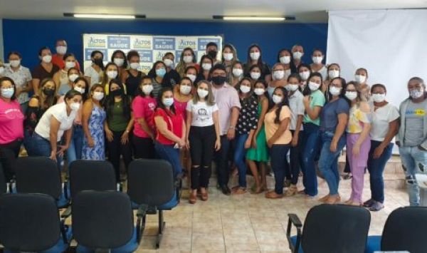 Estavam presentes sendo capacitados todos os gerentes da Atenção Básica do município, enfermeiras, técnicos de enfermagem e farmacêuticas totalizando mais de 50 profissionais.