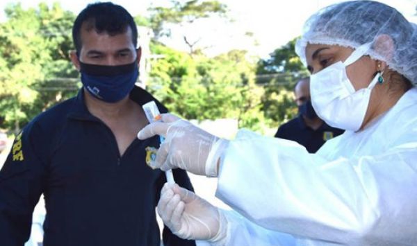 Ao todo, são 50 agentes da Segurança Pública vacinados com a primeira dose contra o coronavírus.