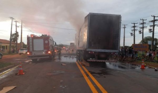 Equipes da PRF e Corpo de Bombeiros no local. Ocorrência em andamento