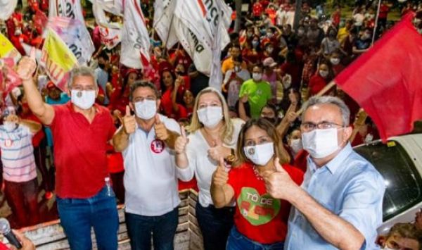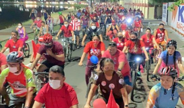 A multidão vestida de vermelho, percorrendo as ruas dos bairros Flores, Centro, Cariri, Matadouro, Estação, Paulo VI e Bairro de Fátima