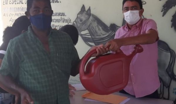 Ela compartilhou uma imagem em aplicativo de mensagem, onde traz um comunicado para os alunos receberem macaxeira, cheiro verde e pimentão.