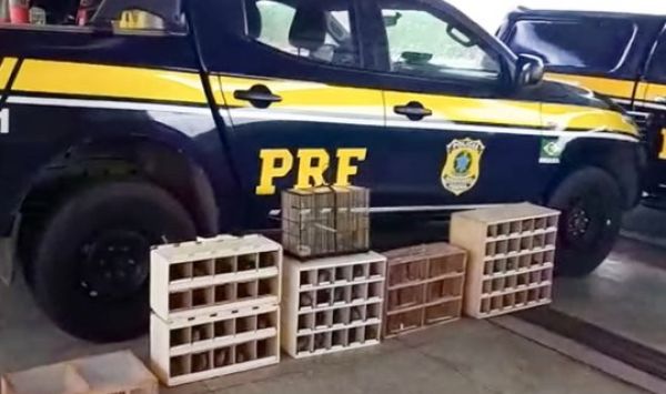 Os pássaros eram transportados acondicionados em pequenas gaiolas no banco traseiro do veículo de passeio.
