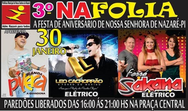É no próximo sábado dia 30 em Nossa Senhora de Nazaré, a 3ª edição do NAFOLIA "Zé Pereira" a maior prévia carnavalesca da região dos carnaubais.