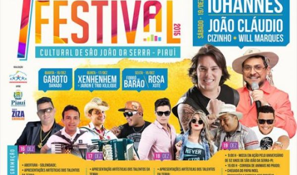 O festival integra as comemorações dos 52 anos de emancipação política de São João da Serra.
