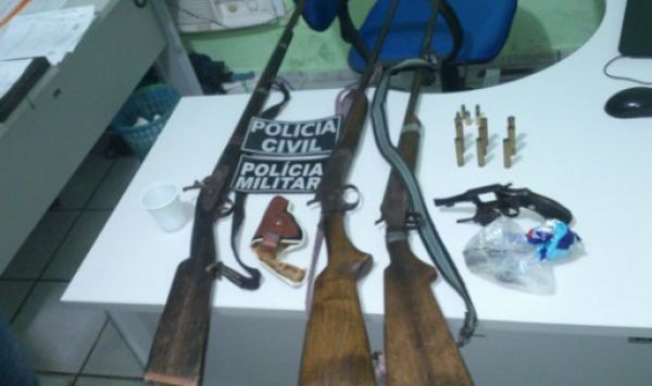 Ao todo, foram apreendidas três espingardas calibre 36 e um revolver calibre 32.