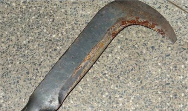 O homem estava em posse de uma foice, porém a polícia foi acionada e evitou o crime.