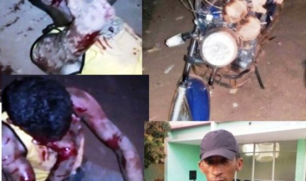 O acusado estava escondido em uma residência e foi encontrado na sua moto Honda Bros de cor vermelha de Placa ODY-2270 ainda suja de sangue.