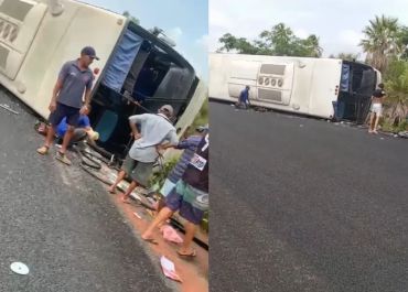 Cerca de 12 pessoas ficam feridas após ônibus tombar entre Beneditinos e Altos (PI)