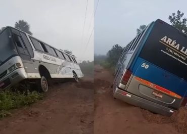 Onibus tomba e quase caí dentro de riacho em Boa Hora (PI)