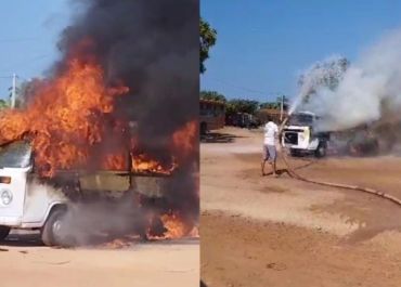 Kombi pega fogo após motorista abastecer em posto de combustível em Boqueirão do Piauí