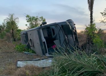 Ônibus clandestino tomba na PI-114 entre Campo Maior e Cabeceiras do Piauí
