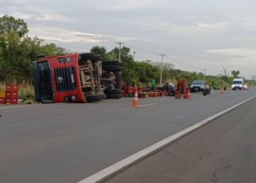 Caminhão carregado de frutas tomba na BR-343 em Capitão de Campos; uma pessoa ferida