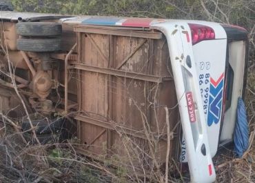 Ônibus com pacientes que fazem hemodiálise em Campo Maior (PI) tomba na BR-343 em Cocal de Telha