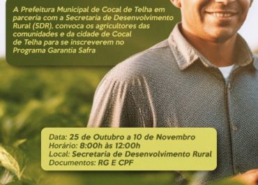 Prefeitura de Cocal de Telha divulga data para agricultores se inscreveram no Garantia Safra