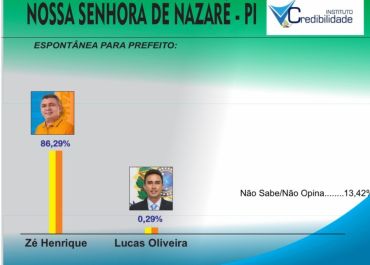 Zé Henrique tem 86% da preferência do eleitorado de N. S. de Nazaré (PI) para prefeito, diz pesquisa