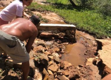 Moradores de povoado em Piripiri (PI) refazem passagem molhada com pneus para receberem os familiares
