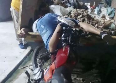 Homem desmaia ao colidir motocicleta contra caçamba de recolher entulhos em Piripiri (PI)
