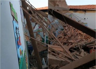 Teto de escola infatil desaba e levanta preocupações em Piripiri (PI); não é a primeira vez