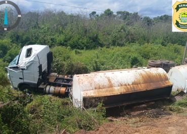 Aproximadamente 200 toneladas de solo contaminado é retirado na BR-343 após caminhão tombar e derramar produto