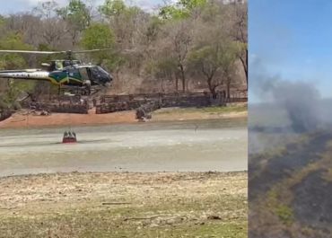 Helicóptero da PM auxilia no combate ao fogo que atinge áreas de Castelo, São João da Serra e São Miguel do Tapuio (PI)