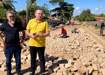 Prefeito Murilo Bandeira visita obras de calçamento em povoado de Sigefredo Pacheco (PI)