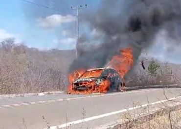Carro pega fogo e fica completamente destruído na PI-477 entre Pedro II