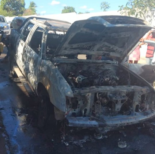 Um veículo modelo S10, de cor prata, ano 2011 pegou fogo na manhã desta quarta-feira (18/09), em uma rua do bairro Canela, na cidade de Oeiras.