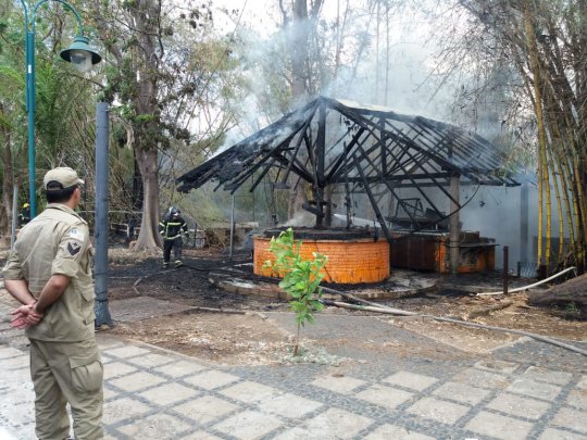 Treze agentes do Corpo de Bombeiros em três guarnições foram necessários para controlar o fogo que destruiu completamente a estrutura do quiosque.