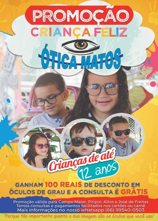 A promoção é válida para Campo Maior, Piripiri, Altos e José de Freitas. Na Ótica Matos as consultas e pagamentos são facilitados nos cartões ou carnê.