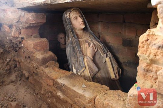Operários que trabalham na obra de reforma da Igreja Matriz de Nossa Senhora do Ó e Conceição encontram embaixo do altar do Santíssimo Sacramento duas imagens uma de Santa Teresa d’Ávila e outra de Santo Antônio. A descoberta trouxe à tona uma antiga informação da existência das imagens enterradas há quase 60 anos, após as mudanças da Igreja Católica com as resoluções do Concílio Vaticano II em 1962. As informações são do Portal V1.