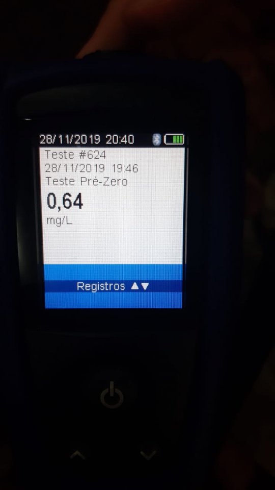 Além disso, foi verificado que o condutor da motocicleta era inabilitado e ainda estava sob efeito de álcool, o que foi constatado através da realização do teste do bafômetro indicando o índice de 0,64 mg/l.