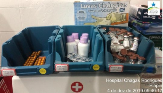 No Hospital Chagas Rodrigues em Piripiri, foram encontrados antibióticos vencidos, lotes de medicamentos vencidos; contagem física demonstrou quantidade de medicamentos divergente do estoque do sistema; tomógrafo em desuso.