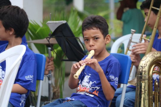 Com apenas 9 anos, o pequeno Marcelo Magno é um exemplo de superação e força de vontade. Ele tem paralisia cerebral e toca na Orquestra Maestro Elton Oliveira, que se apresentou neste sábado (14) no Teresina em Ação, no bairro Portal da Alegria. Durante o evento, 150 serviços são ofertados e terá uma visita ilustre do Papai Noel.