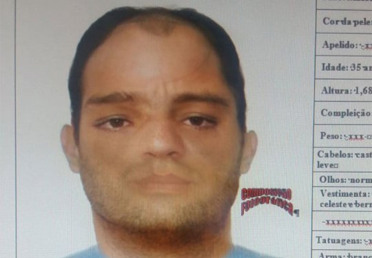 Segundo o relato da vítima, o homem tem pela clara, altura de aproximadamente 1,68m, cabelos castanho com calvície leve e idade aparente de 35 anos. No momento do crime ele usava uma camisa azul celeste e bermuda azul claro. O retrato falado não representa a "cópia fiel" do suspeito procurado, mas tem um grau de semelhança de 80%.
