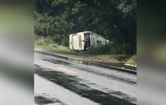 A pista molhada e um problema mecânicos foram as causas do acidente. Um vídeo (VEJA NO FINAL DA MATÉRIA) mostra outro ônibus tombado no mesmo local, mas um acidente não teve ligação com o outro.