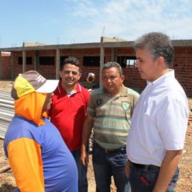Acompanhado do Secretário de Educação, Professor Ribinha, o prefeito visitou o andamento da construção de uma escola moderna que já está com 30% concluída no Conjunto Renascer, depois a última etapa do calçamento do Conjunto Renascer que está sendo a construção da calçada e por fim esteve na Rua Jordão no Bairro Parque Estrelas onde irá iniciar a obra de calçamento ainda esta semana.