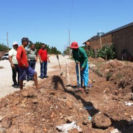 Construção da calçada no Conjunto Renascer