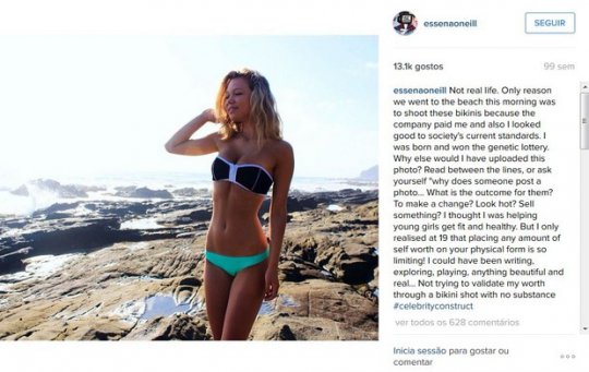 Ela ganhava até R$ 5 mil para postar no Instagram uma foto na qual aparecia de biquíni, só para citar a marca da peça. Mas depois de conquistar mais de 700 mil seguidores, a australiana Essena O'Neill, de 19 anos, decidiu provocar uma discussão sobre a rede social. Ela deletou mais de duas mil fotos de seu perfil - que, segundo ela, "não serviam para nada a não ser autopromoção" - e, nas 96 que ficaram, mudou a legenda. "Rede social não é vida real", justificou a blogueira e modelo, que agora criou um site e está convocando outros internautas para que também deixem o Instagram.
